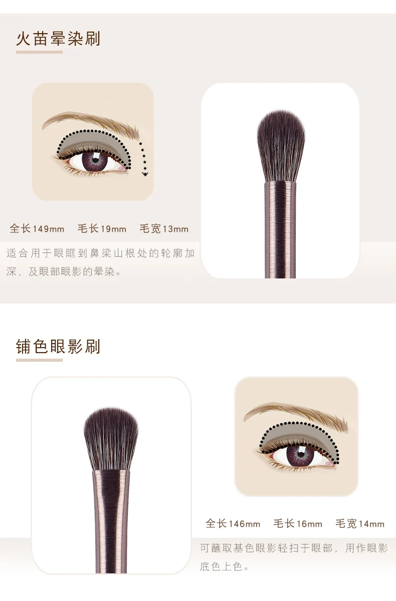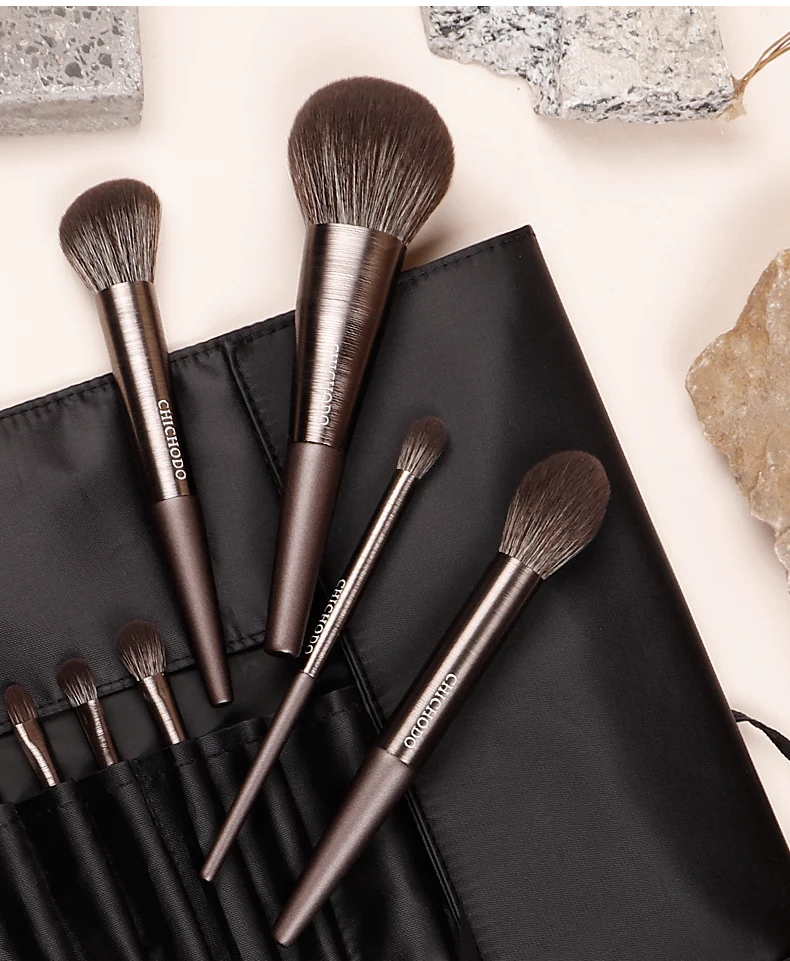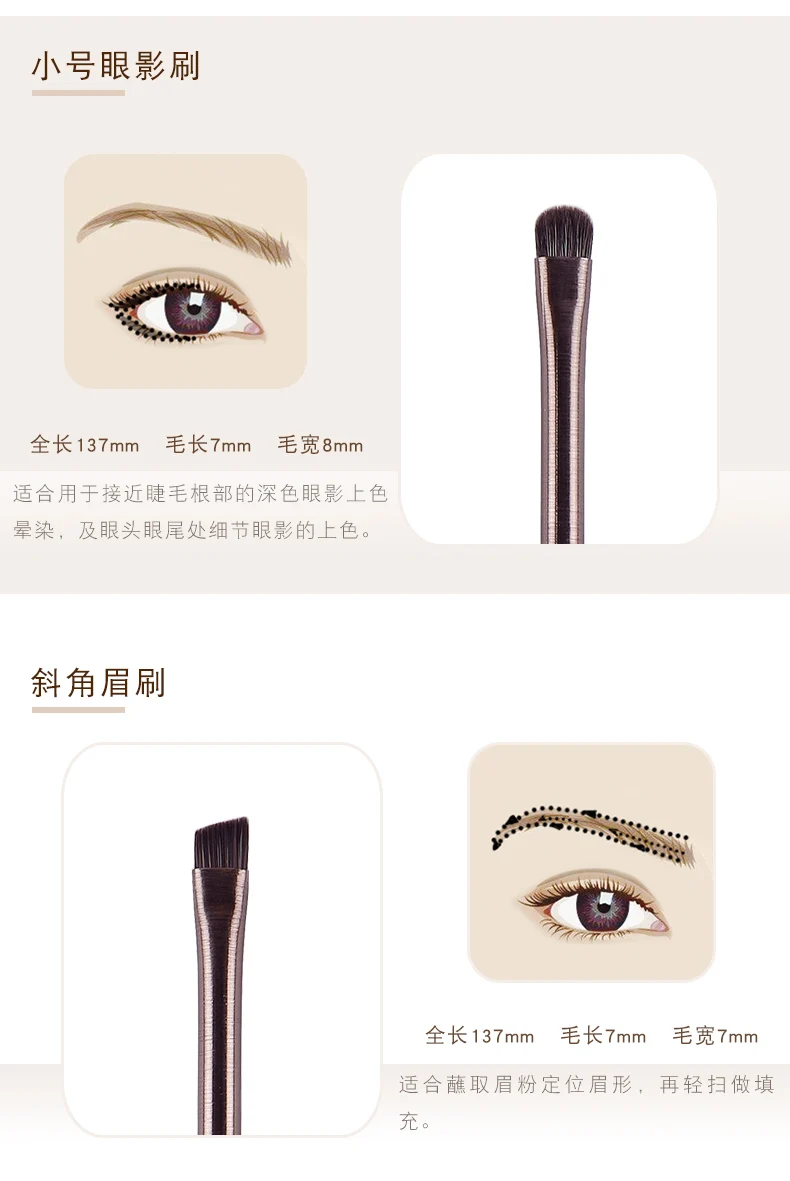 include a black brush pack + loose powder brush + contouring brush + highlight brush + concealer brush + smudge brush + eyebrow brush + color eye shadow brush + medium eye shadow brush + small eye shadow brush